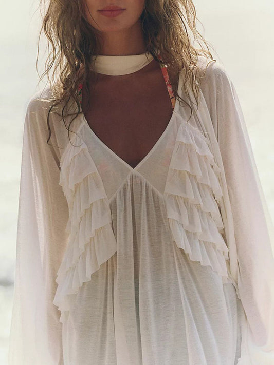 Sheer Ruffle Trim Beach Cover-Up