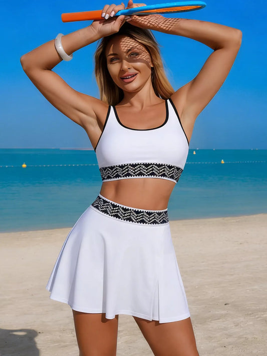 White Birch Sleeveless Twisted Back Performance Knit Swim Dress